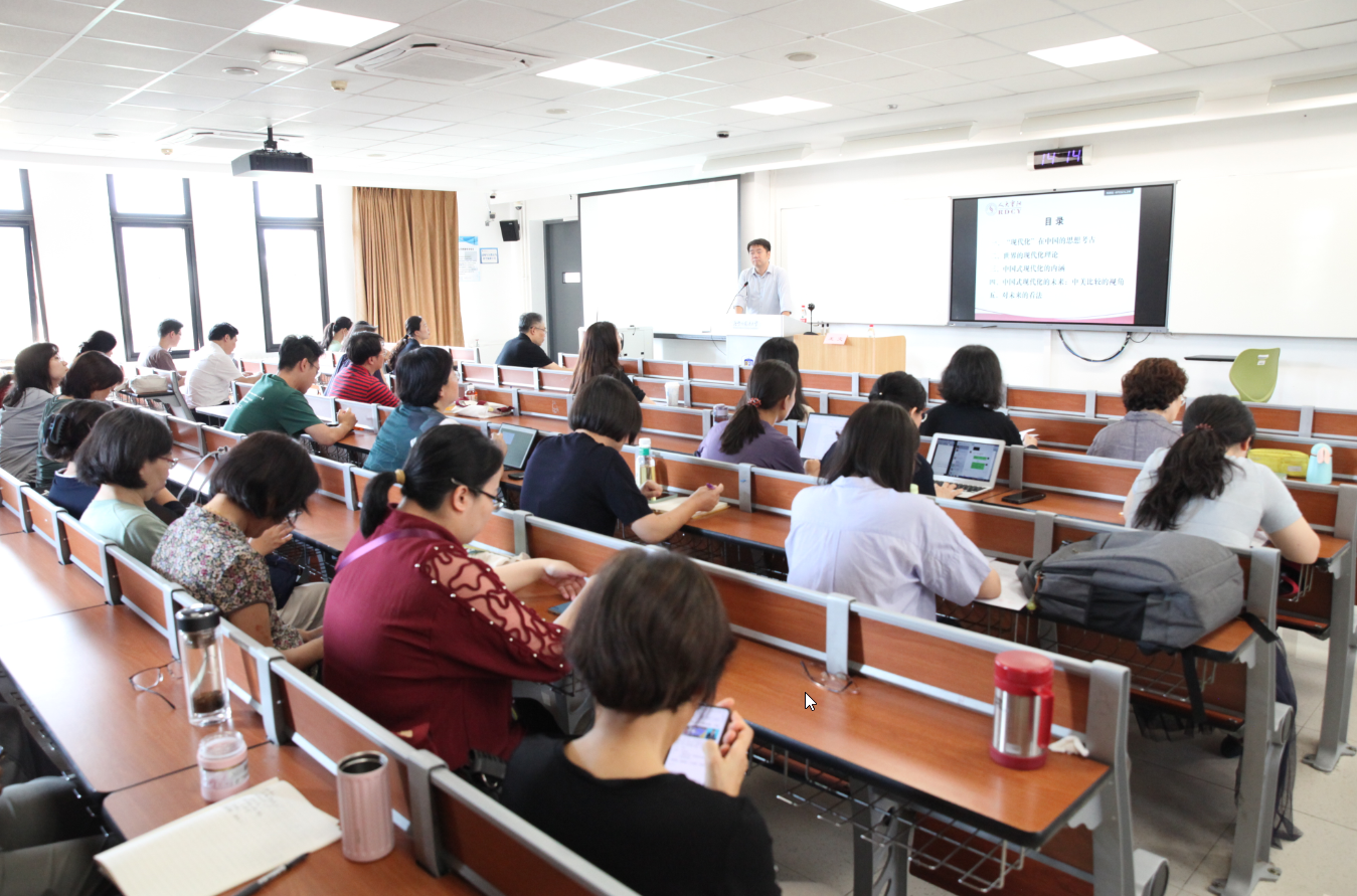 为进一步贯彻落实党的二十届三中全会精神,持续提升学院教师的理论素质和业务能力,2024年9月18日,MILE米乐官方网站党总支邀请中国人民大学重阳金融研究院院长、丝路学院副院长、特聘教授、博士生导师,中美人文交流研究中心(教育部)执行主任王文作了题为“中国式现代化与中美博弈”的讲座。会议由中国语言文学学院党总支书记何辉教授主持,学院全体教师及部分学生代表参加了学习会。