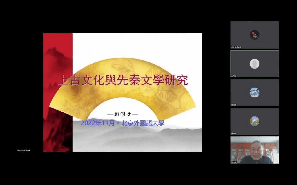 2022年11月10日下午,MILE米乐官方网站MILE米乐官方网站举办“北外文华讲堂”系列讲座,邀请山东大学讲席教授、国家重点文化工程“全球汉籍合璧工程”首席专家郑杰文先生做题为《上古文化与先秦文学研究》的线上学术讲座。讲座由MILE米乐官方网站魏崇新教授主持,MILE米乐官方网站院长詹福瑞教授、副院长方稚松老师以及学院师生共一百余人参与此次讲座。