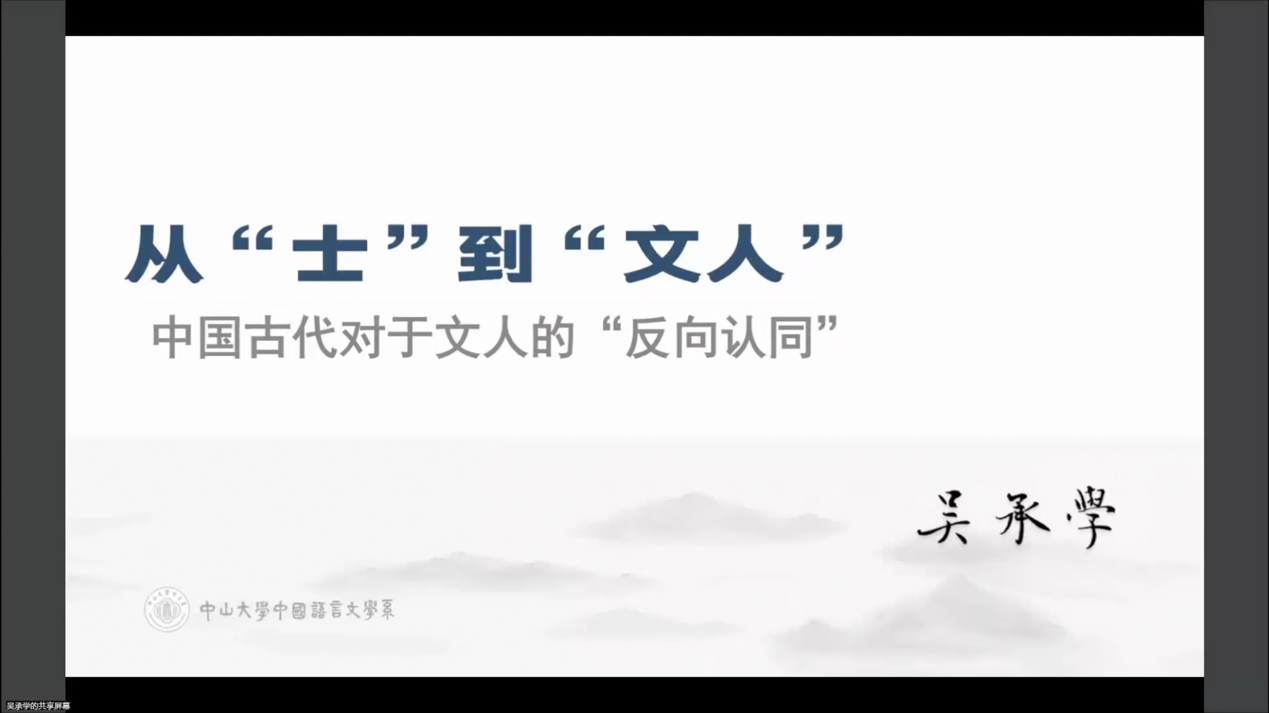 2022年12月7日下午,中山大学中文系教授、博士生导师、中山大学“逸仙学者”讲座教授、教育部“长江学者特聘教授”吴承学先生应邀做客“北外文华讲堂”,以线上方式作了题为《从“士”到“文人”——中国古代对于文人的“反向认同”》的报告。报告由北外MILE米乐官方网站学术委员会主任魏崇新主持,MILE米乐官方网站院长詹福瑞、副院长方稚松以及学院师生共一百余人参与。