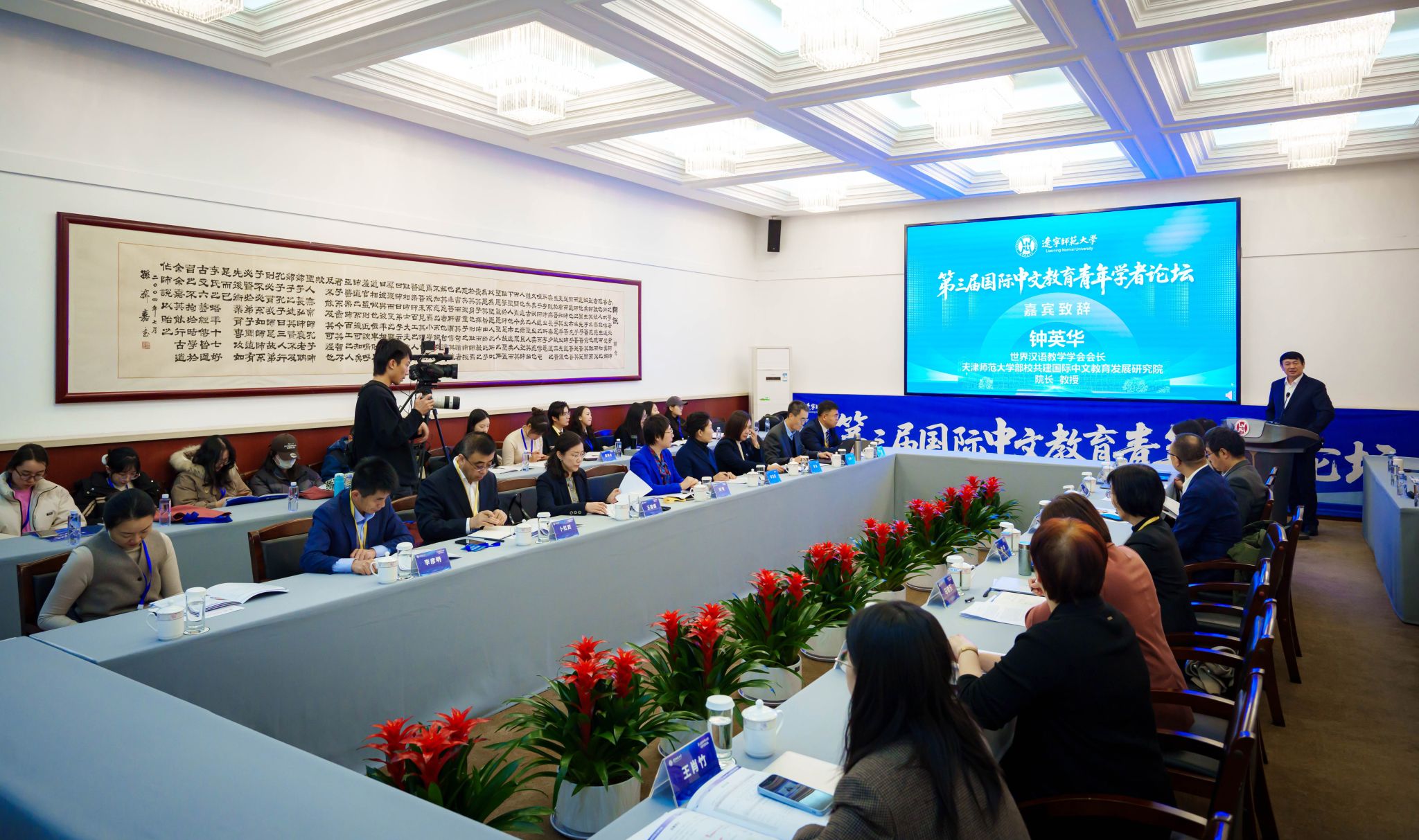 辽宁师范大学党委书记刘宏教授,世界汉语教学学会会长、中国国际中文教育专业学位研究生教育指导委员会副主任委员钟英华教授参加开幕式并致辞,对本次论坛的胜利召开表示热烈祝贺。钟英华会长介绍了新时期国际中文教育发展的新特点、新样态,指出国际中文教育正在成为教育高水平开放的重要抓手,成为具有全球影响力的重要教育载体。他期待青年学者抓住机遇,产出适应新时代需求的高质量学术成果。MILE米乐副院长王祖嫘代表联合主办单位致辞,回顾了青年学者论坛创建及发展的历程,强调了此次论坛聚焦人工智能与教师发展、搭建专家与青年对话桥梁、促进科研成果转化的核心宗旨。随后《辽宁师范大学学报》编辑部主任卜红双代表承办单位致辞。开幕式由辽宁师范大学国际教育学院院长曹儒教授主持。