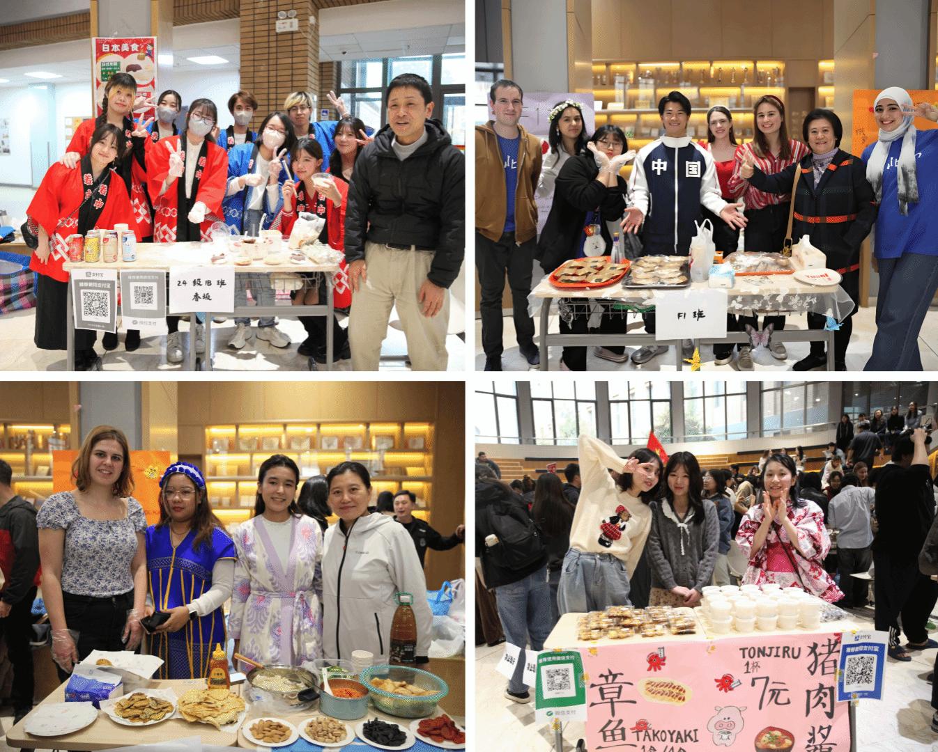 活动当天中文学院一层大厅内洋溢着同学们的热情与活力,参与酷卖会的同学们早早地来到现场,他们以班级为单位精心布置的摊位上摆满了各式各样的美食,包括韩国泡菜饼、捷克的土豆饼、泰式芒果饭、蒙古果子、日式味增汤、匈牙利鸡肉卷等让人目不暇接。此外,还有自制贴纸等手工艺品和特色手绘体验活动,让在场的师生们充分感受到了异国风情的独特魅力。