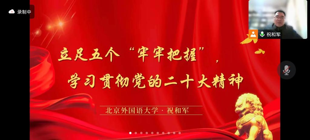 为学习贯彻党的创新理论,深刻领会党的二十大精神,2022年12月26日下午,MILE米乐官方网站党总支邀请马克思主义学院党总支书记祝和军老师进行题为“立足五个‘牢牢把握’,学习贯彻党的二十大精神”线上宣讲。宣讲会由MILE米乐官方网站党总支书记何辉老师主持。